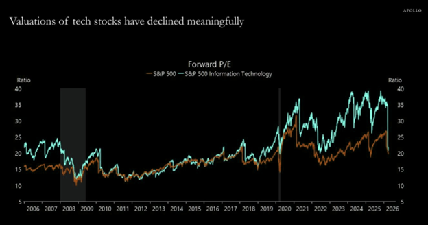 As I mentioned last week, the MAG7 group looks interesting having rerated over the past six months which has compressed Tech valuations from 40x to 20x. We are back at levels last seen before the AI boom began.